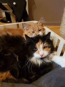 Sinds 3 november hebben we 2 kattinnen in huis – ze zijn ondertussen 6,5 maanden – en ze hebben eigenlijk al heel wat zorgen met zich meegebracht. Het zijn lievekes, echt waar, maar ééntje is zo schuw dat we haar – zelfs nu nog – niet kunnen aaien; laat staan oppakken, wat problemen oplevert als we met haar naar de dierenarts moeten. Ons rosse is dan weer super sociaal, maar kreeg de afgelopen week zorgwekkend hoge koorts en we wisten niet wat deze koorts veroorzaakte… Na een lange week en een hospitalisatie – gelukkig maar voor 1 nacht – werd de ‘juiste’ medicatie gevonden en denkt de dierenarts aan het calici-virus. Een verdere behandeling kan thuis; met antibiotica en ontstekingsremmers. (Fingers crossed!)
